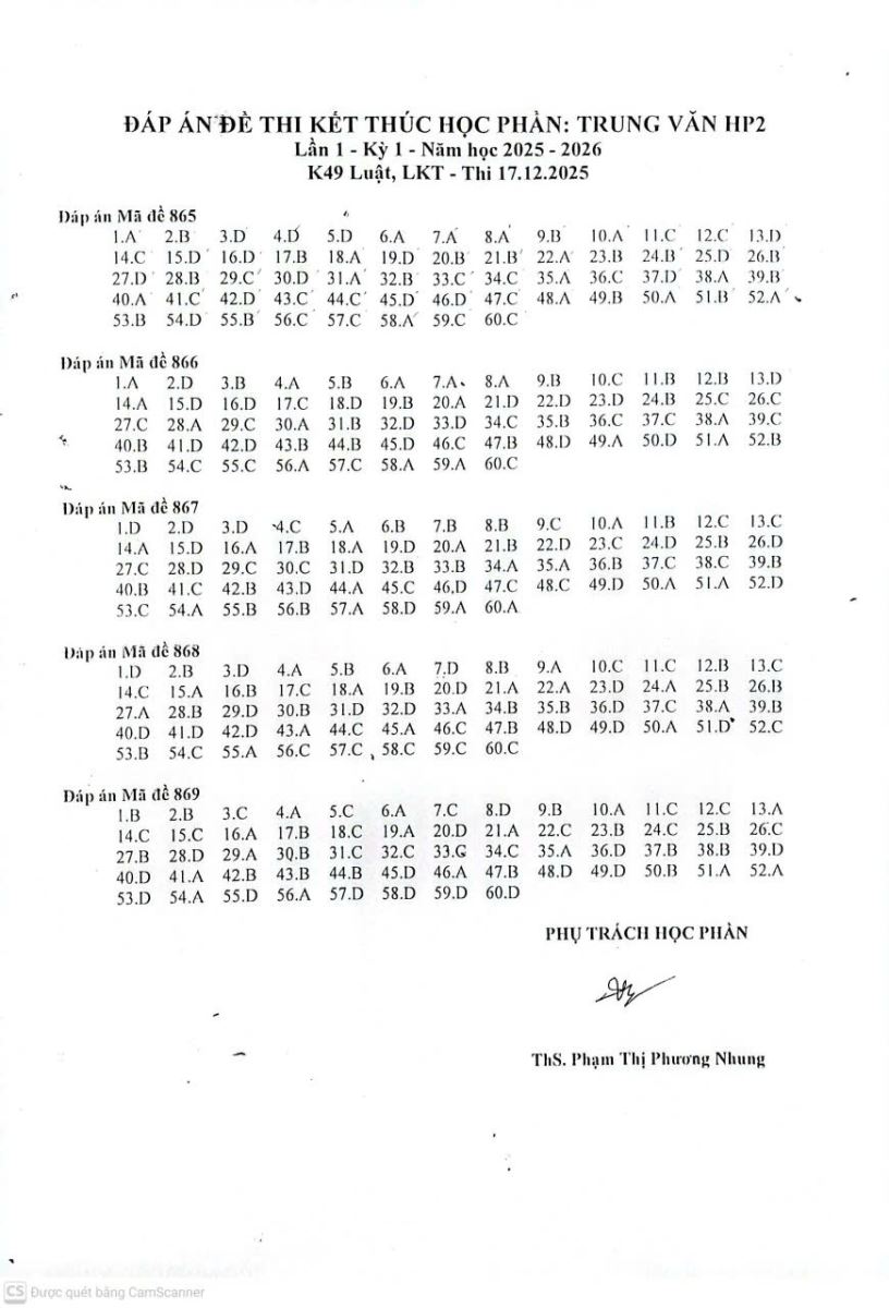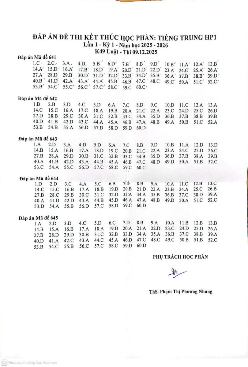 » BM. Nga - Pháp - Trung: Đáp án Kỳ thi hết học phần, HK1 năm học 2024-2025