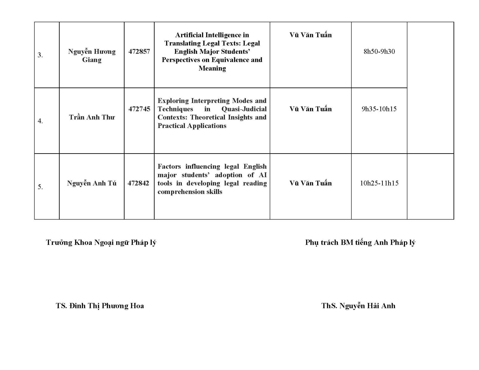 » DANH SÁCH HỘI ĐỒNG ĐÁNH GIÁ KHOÁ LUẬN TỐT NGHIỆP KHOÁ 46 - NGÀNH NGÔN NGỮ ANH